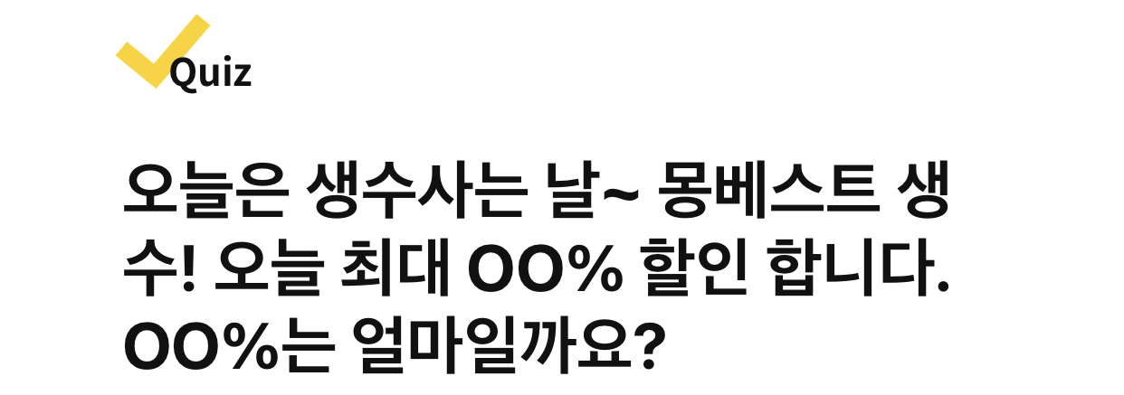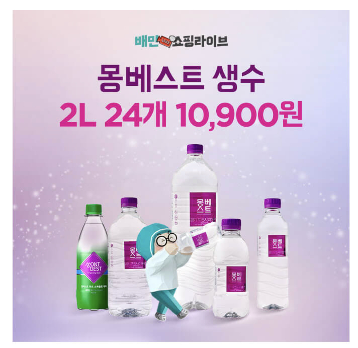 오늘은 생수사는 날~ 몽베스트 생수! 오늘 최대 OO% 할인 합니다. OO%는 얼마일까요?