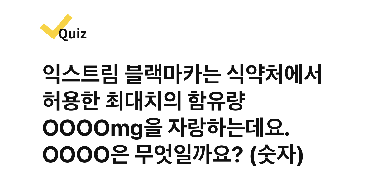 익스트림 블랙마카는 식약처에서 허용한 최대치의 함유량 OOOOmg을 자랑하는데요. OOOO은 무엇일까요? (숫자)