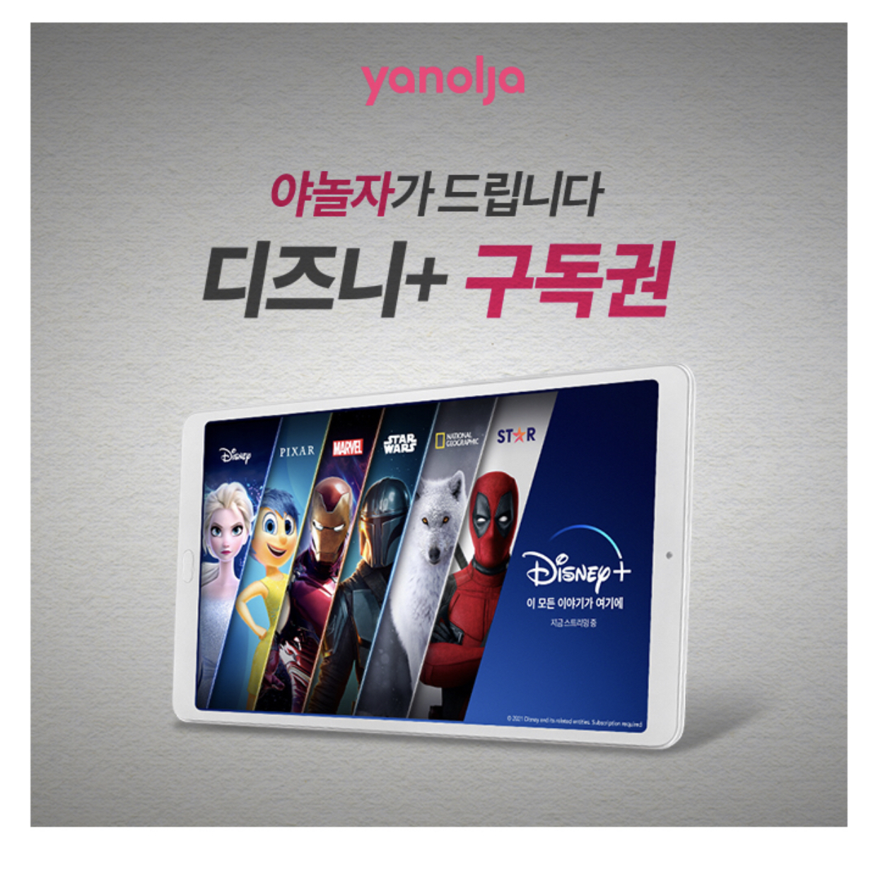 야놀자에서는 프리미엄 호텔/펜션을 예약한 분들께 디즈니+ O개월 구독권을 드리고 있어요.