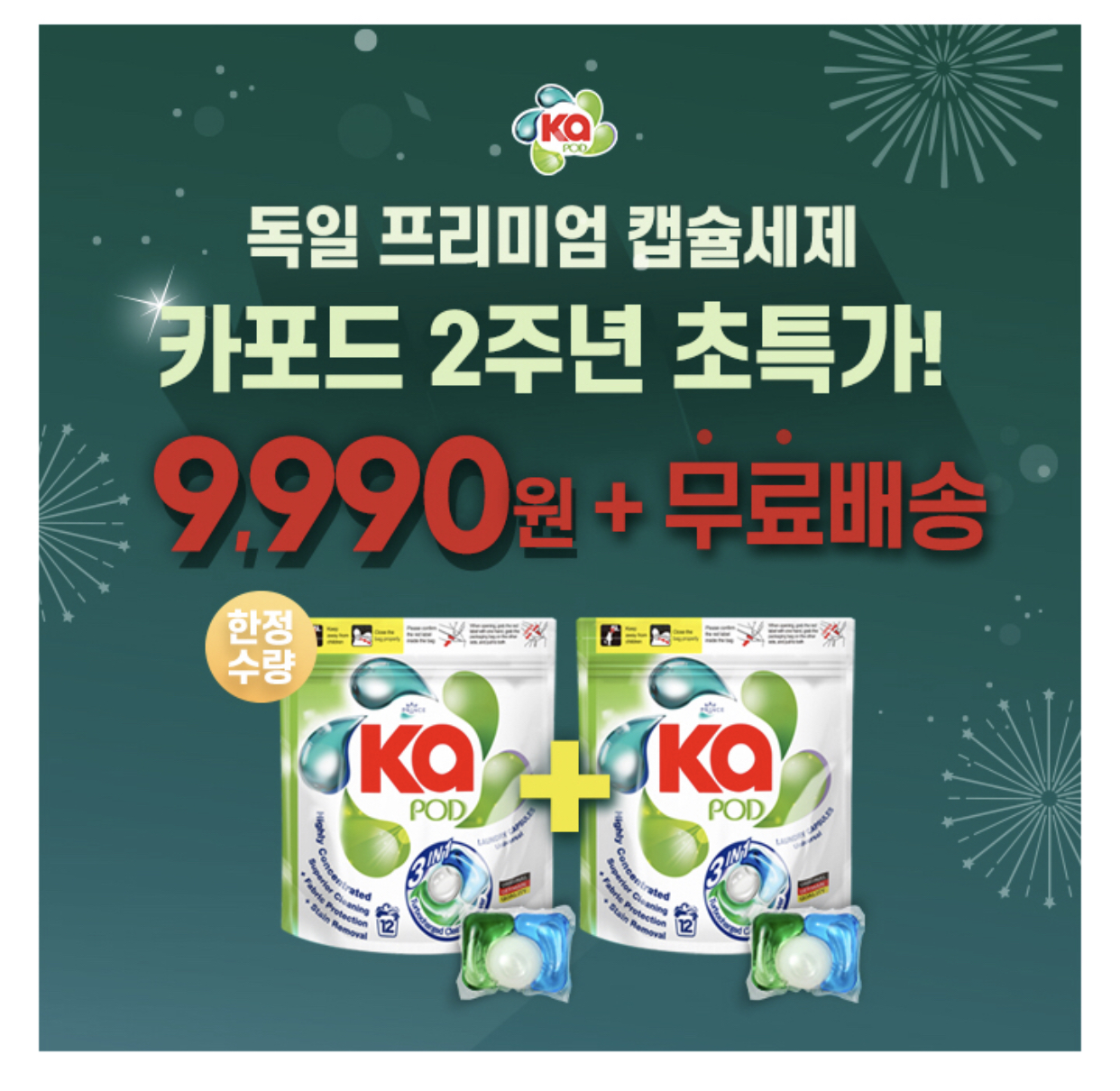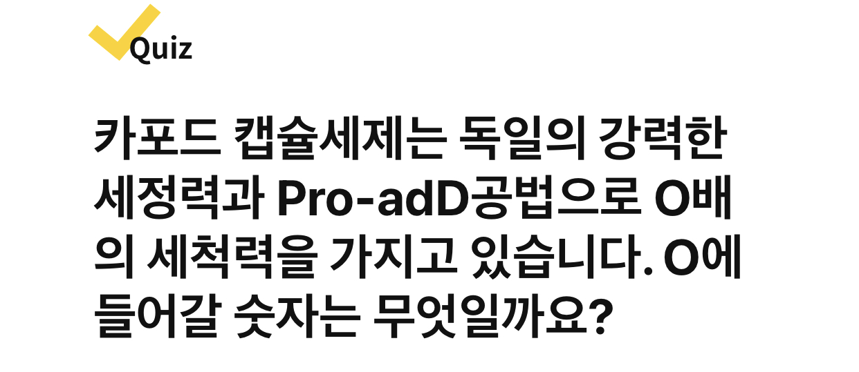카포드 캡슐세제는 독일의 강력한 세정력과 Pro-adD공법으로 O배의 세척력을 가지고 있습니다. O에 들어갈 숫자는 무엇일까요?